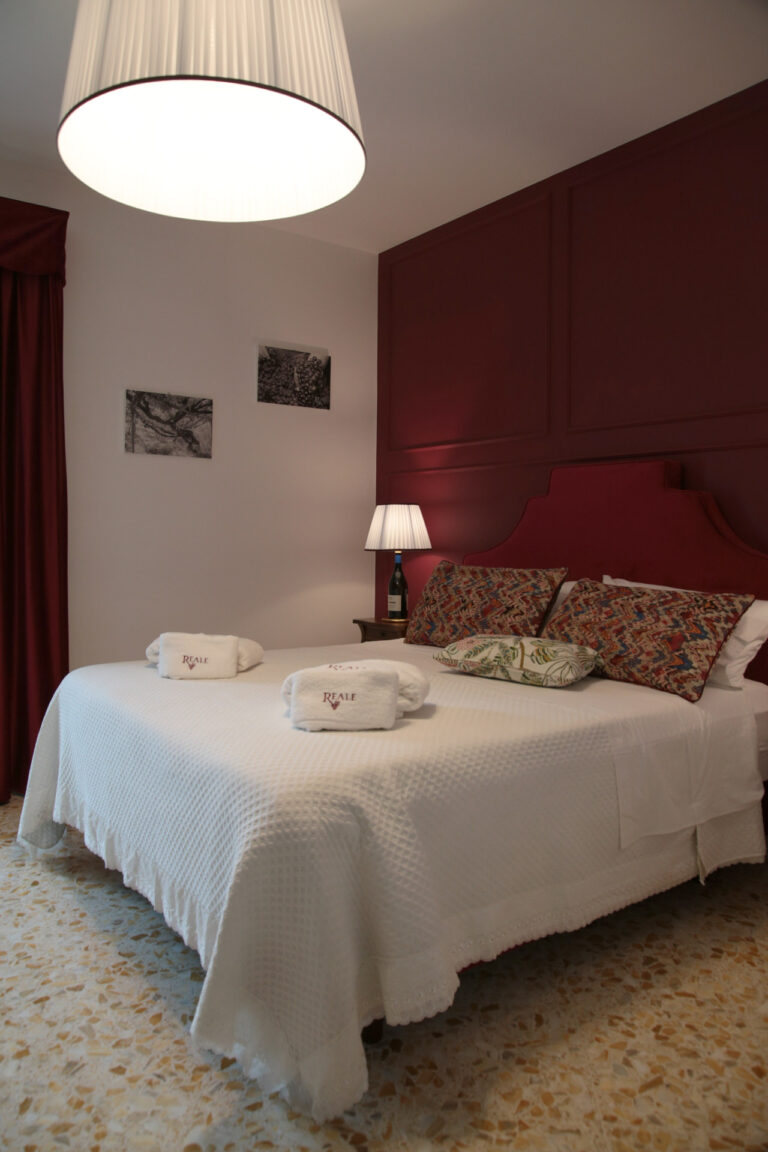 Il letto matrimoniale ampio e comodo è ideale per un soggiorno rigenerante, mentre il bagno privato è completo di doccia, accappatoi, asciugamani, set cortesia e asciugacapelli.